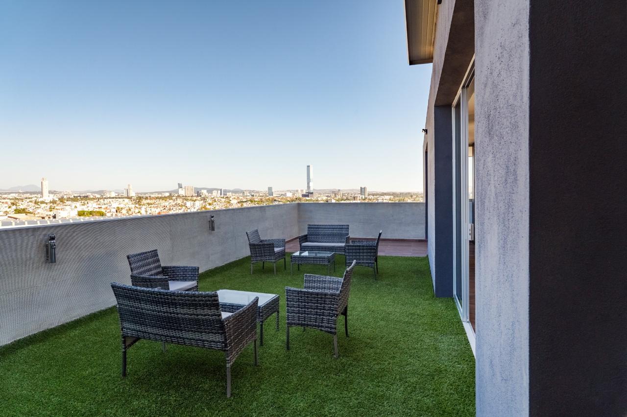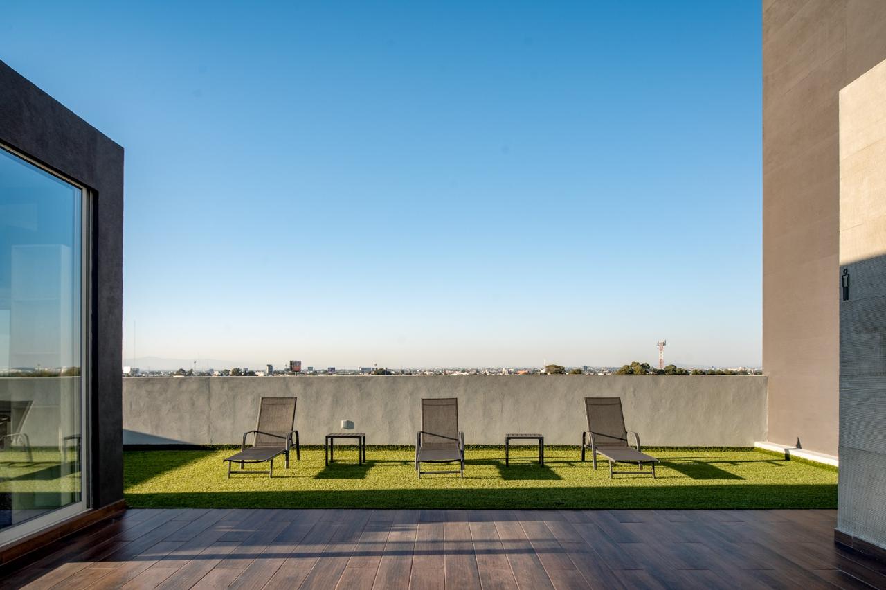 Punto Horizonte es el único desarrollo en la zona que cuenta con 2 torres unidas por un puente, que conecta las áreas comunes en piso 16, Sky Pool, Fitness Center, Zona Zen, Lounge, Asoleadero, Terraza y Cardio, brindándote una impresionante vista sin obstáculos a los volcanes para crear una experiencia inigualable. Todo esto hace de Punto Horizonte un desarrollo vanguardista y único para vivir.
