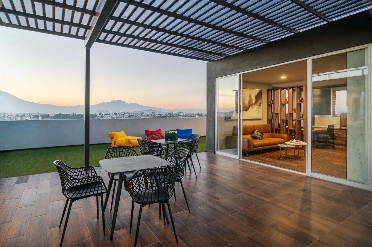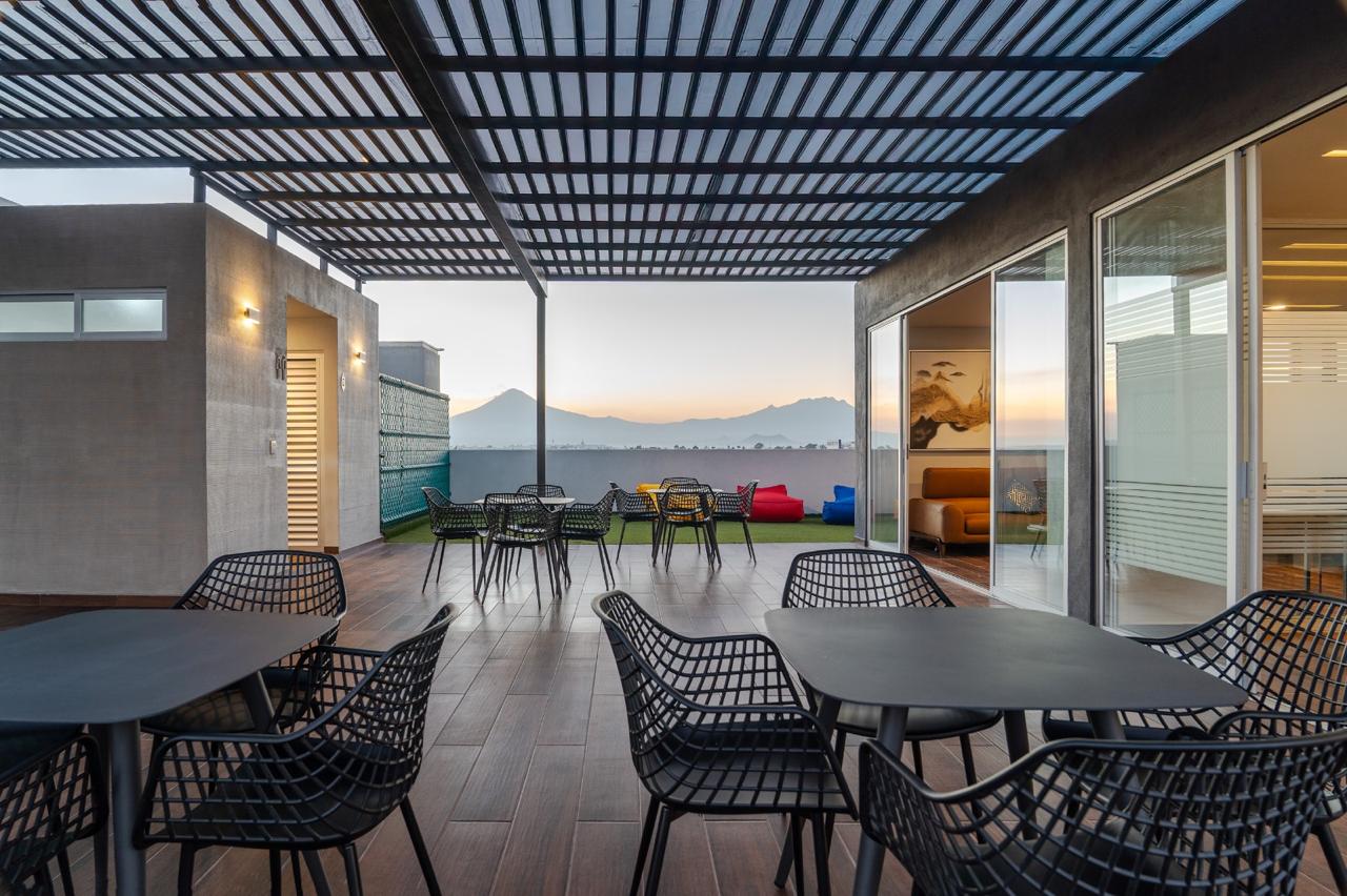 Las amenidades de la torre son: Lobby, alberca exterior climatizada, kids garden, pet garden, asadores, ágora con fogatero en el roof un gimnasio con vistas espectaculares, espacio de coworking y un sky lounge para disfrutar de grandes momentos entre amigos y familia.